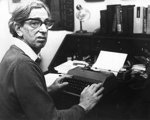 Eric Hobsbawm at his typewriter. Source: John Brown via Jacobin.