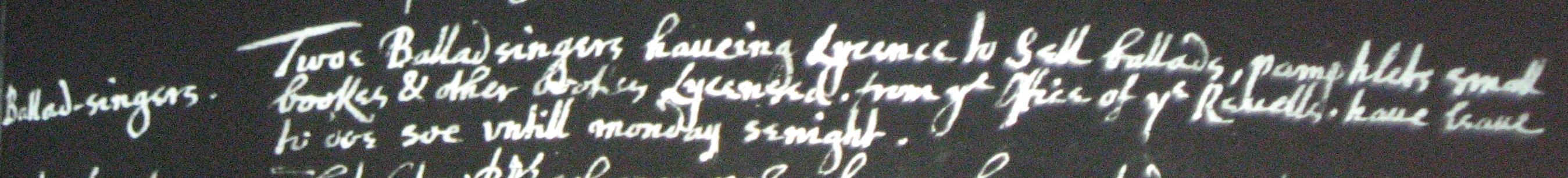 In June 1680, for example, the Norwich Mayor’s court ordered that ‘Twoe Ballad singers haveing Lycence to Sell ballads, pamphlets small bookes & other bookes Lycensed from the Office of the Revells have leave to doe soe until Monday senight [?seven-night]’.1