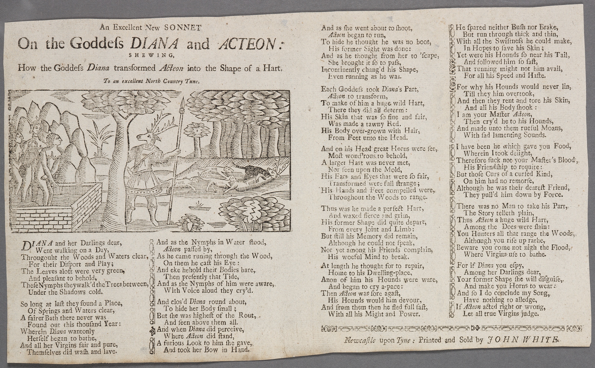 Ballad entitled ‘An Excellent New Sonnet On the Goddess Diana and Acteon’ (c.1725-69). EBBA.
