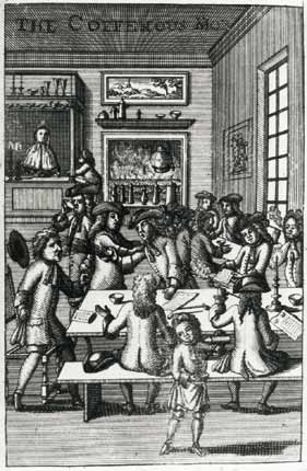 Ned Ward, ‘The CoffeeHous Mob’, frontispiece to Part IV of ‘Vulgus Britannicus, or the British Hudibras’ (London, 1710). Via Cabinet.