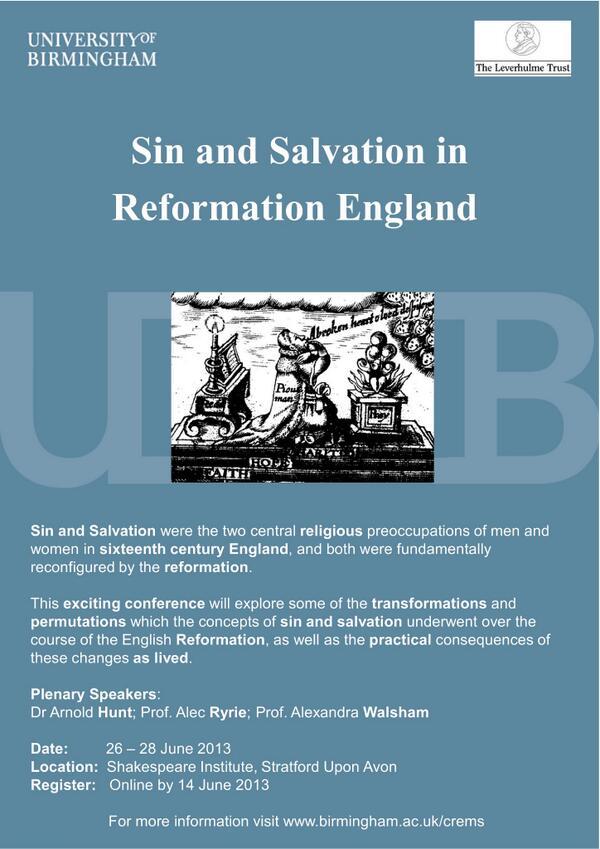 BMo-JLGCIAA465NMy second experience of editing is a volume of essays on Sin and Salvation in Reformation England, based on a conference of the same name which I organised in 2013. It had always been my intention to produce an edited volume arising from the event: after the conference I emailed the speakers, and to my delight, of 24 speakers at the conference, 14 are included in this current volume. I say 14, but that’s 15 including myself, as I’m writing an essay as well as a general introduction to the volume. Not only is that a pretty good number of essays, it’s also a great strike rate, considering that many conference papers are based on material that’s intended for publication (or indeed may already have been submitted) elsewhere – I know I’ve done it, and I’m sure that we all do from time to time. Seeing this process through from beginning to end, from a seed of an idea relating to my research, to putting on my dream conference, to attracting such a great selection of essays, and getting a chance to attach my personal gloss in the form of the introduction, has been a brilliant experience, but I’m so glad that I had some prior experience of co-editing before I took this on myself.