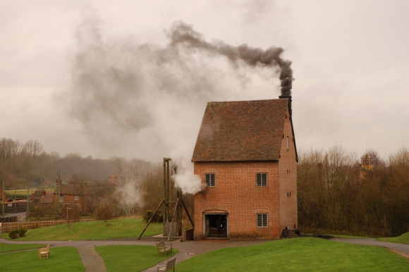A working replica of the first Newcomen steam engine, 1709, built and operated at the Black Country Living Museum, Dudley. The engine is a similar size, and uses a similar amount of mineral coal, as many of the facilities that produced beer, spirits, glass, and bricks in early modern London