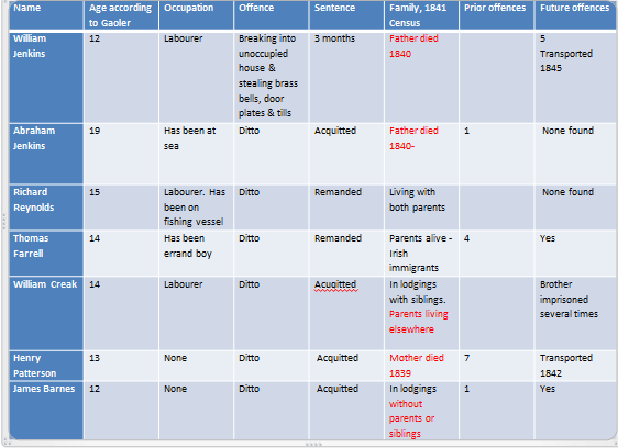 Figure 5 Boys arrested with WJ Published August 4, 2015 at 562 × 408 in Figure 5 Boys arrested with WJ William & his mates: 7 January 1842, arrested for breaking into unoccupied house & stealing brass bells, door plates & tills