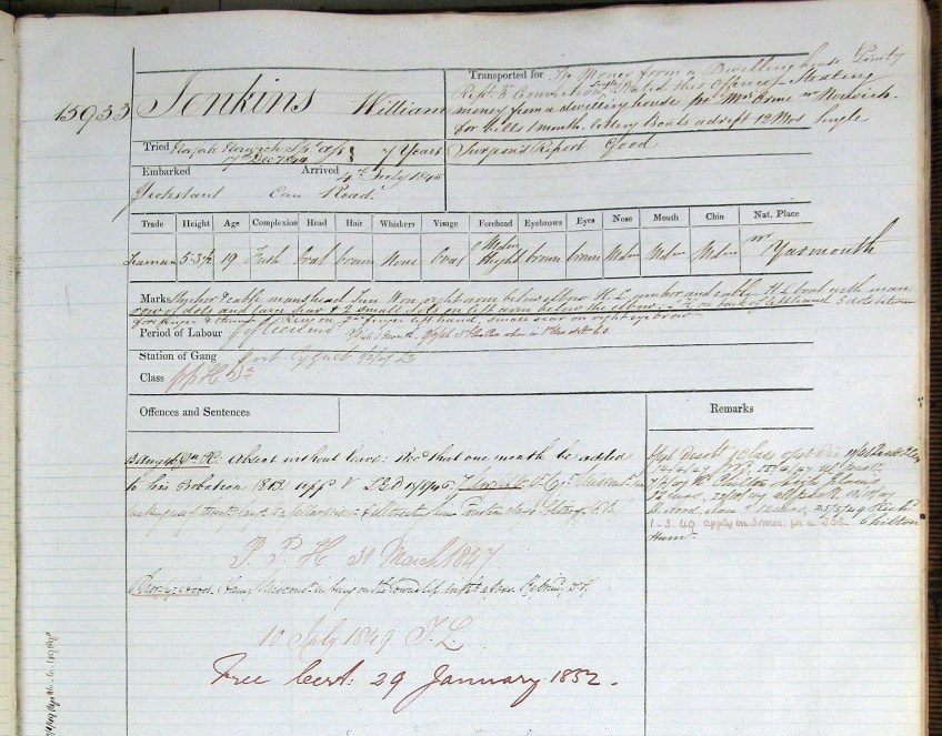 Figure 7 William Jenkins Convict Record Con Rec CON33-1-67_00119_L Published August 4, 2015 at 2374 × 1858 in Figure 7 William Jenkins Convict Record Con Rec CON33-1-67_00119_L Conduct record William Jenkins, 1845, Tasmania State Archives, CON33/1/67
