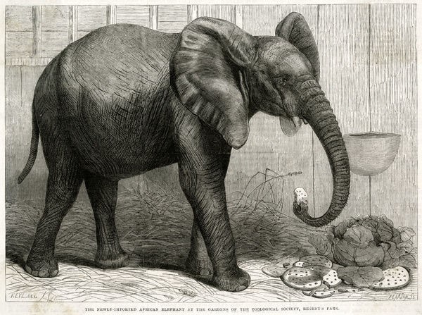 Jumbo 1 Published March 3, 2021 at 600 × 447 in Jumbo 1 Jumbo as a young elephant eating buns. Illustrated London News.